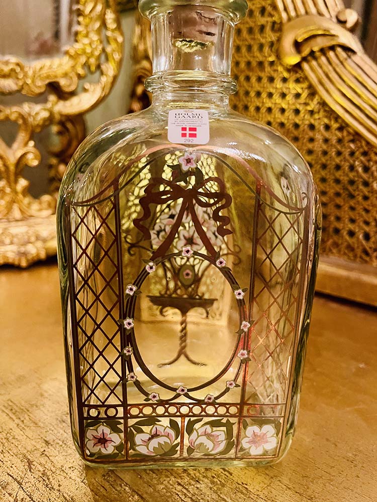 1993 års julkaraff från danska Holmegaard. Karaffen rymmer 65 cl. Holmegaards glasbruk startades 1825. I början tillverkade man enbart grönt glas. Från att ha varit en litet glasbruk har det vuxit till ett stor modern grupp över en period av 175 år. Karaffen är illustrerad av Jette Frölich. 1976 tillfrågades hon om hon ville bli årets konstnär. Sedan 1980 har hon dekorerat Holmegaard’s Christmas med sina vackra julmotiv. Särskilt julkaraffen kommer hennes dekorationer till sin fulla rätt. Den första karaffen kom 1981. Michael Bang har formgivit den här karaffen och troligtvis alla de andra sedan 1981. Han är välkänd glaskonstnär och finns representerad på olika museer världen över. Karaffen ligger i originalkartongen och är ny och oanvänd.