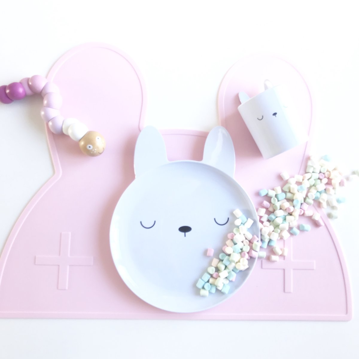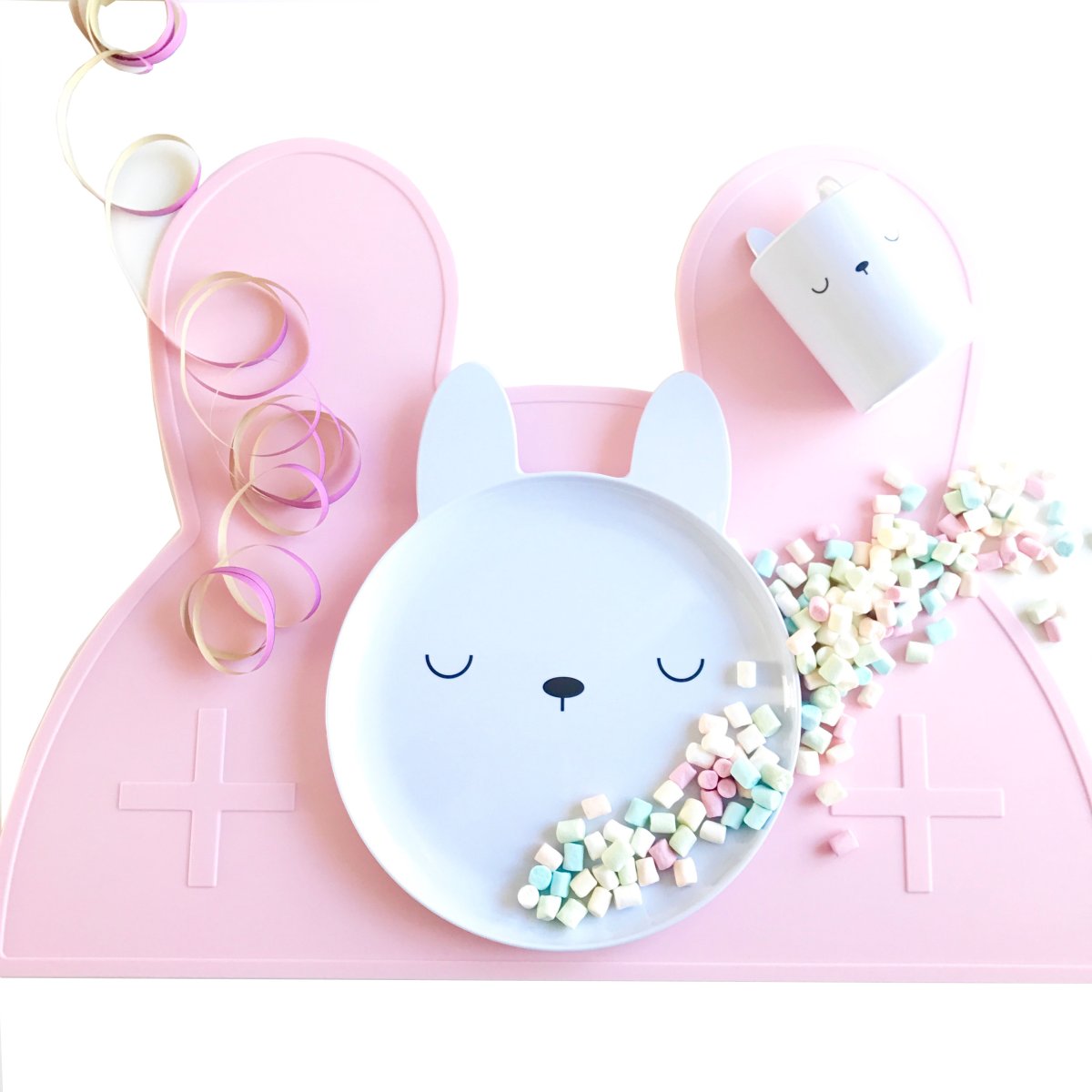 En fin och stöttålig barntallrik av melamin i form av en söt kanin. Matcha gärna med mugg i samma serie.
