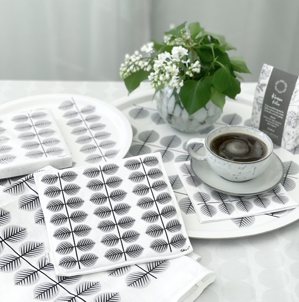 Fin kökshandduk med det klassisk mönstret Berså, designat av Stig Lindberg för Gustavsbergs porslinsfabrik. Kökshandduken består till lika stora delar av linne och bomull. Vilket ger en produkt i naturmaterial som inte bara enkelt torkar rent ditt Bersåporslin, utan fungerar även som ett vackert inredningsmotiv i köket och bidrar till en genuin atmosfär i hemmet!