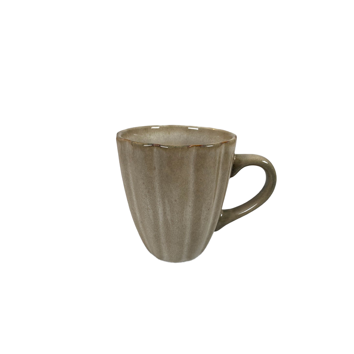 En större mugg som ingår i serien Joy från Miljögården. Porslinets kulör är gjord med en reaktiv glasyr. Tillverkningsprocessen gör varje del unik i färg och mönster.