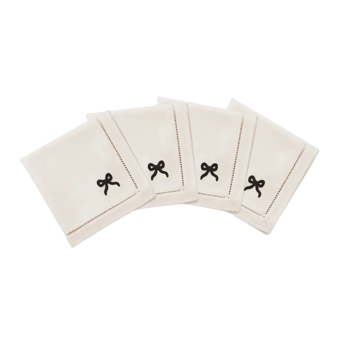 Oavsett om du ska annordna en formell middagsbjudning eller intar en avslappnad måltid i trädgården, tillför vår flirtiga men sofistikerade bomullsservett en touch av lekfull elegans. Bow är handgjord i 100% bomull och kommer i en krispigt vit färg, handbroderad med vår ikoniska POPPY-rosett i en kontrasterande färg. Servetterna säljs i 4-pack – perfekta att duka med för att skapa en genomtänkt och charmig atmosfär runt bordet.