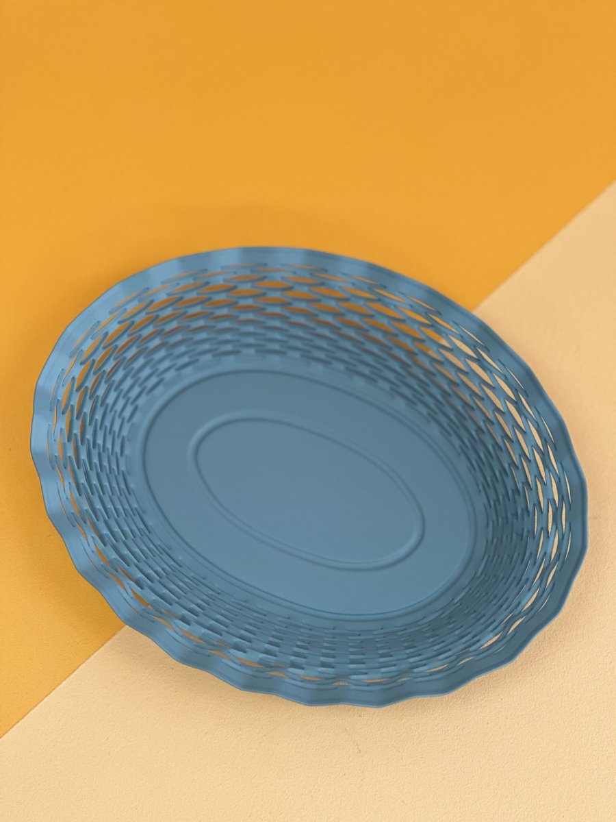 Vacker och tålig brödkorg i blått från franska Roger Orfevre. Perfekt till frukostbordet, servering eller som en inredningsdetalj i köket.