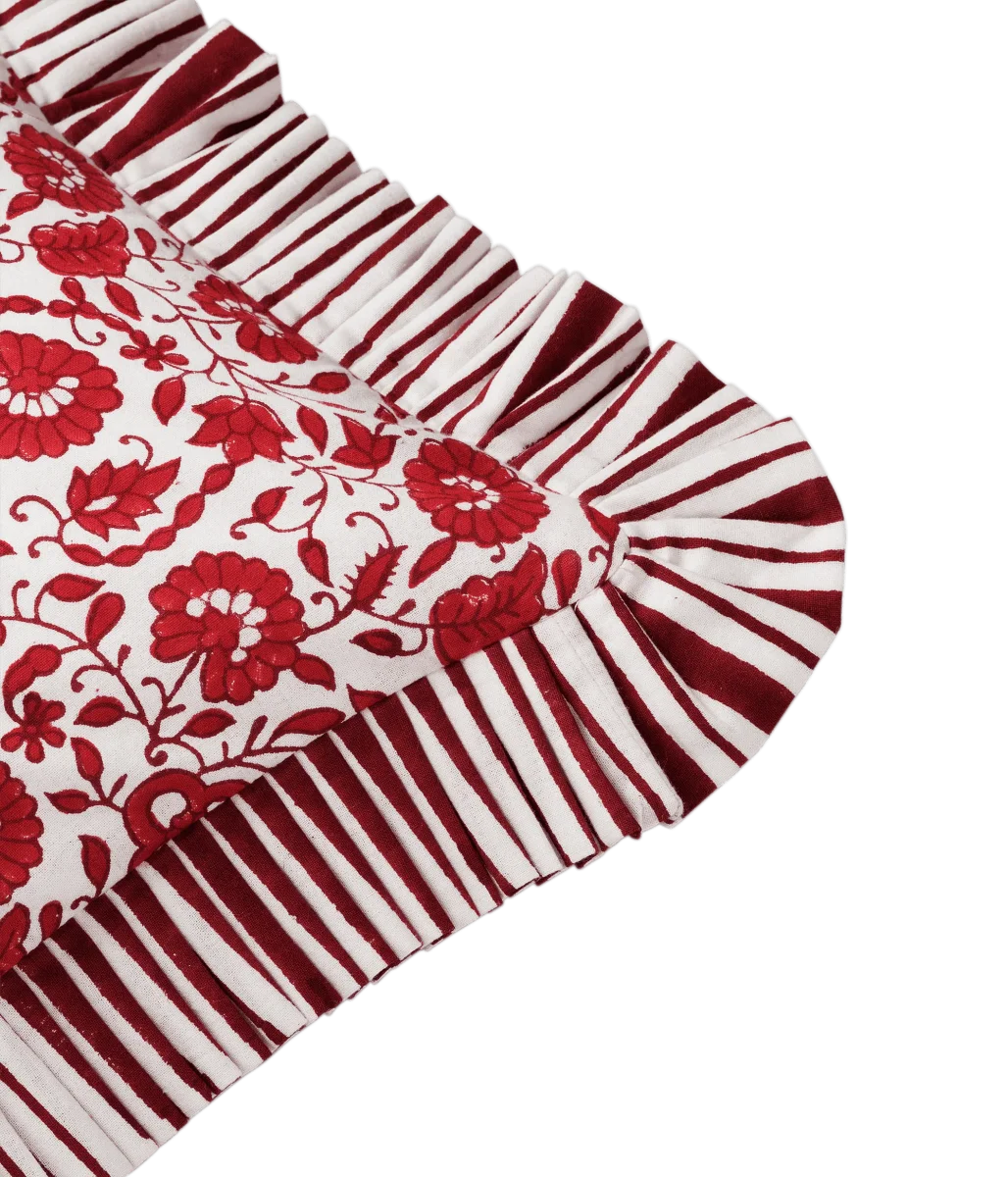 Ge din matplats en charmig atmosfär i sann POPPY-anda. Våra dekorativa och färgglada kuddfodral finns i olika storlekar och färger. Blocktryckta för hand med gammalt hantverk i Jaipur, tillför dessa kuddfodral med kontrasterande broderade volanger en charmig touch till vilket rum som helst.
