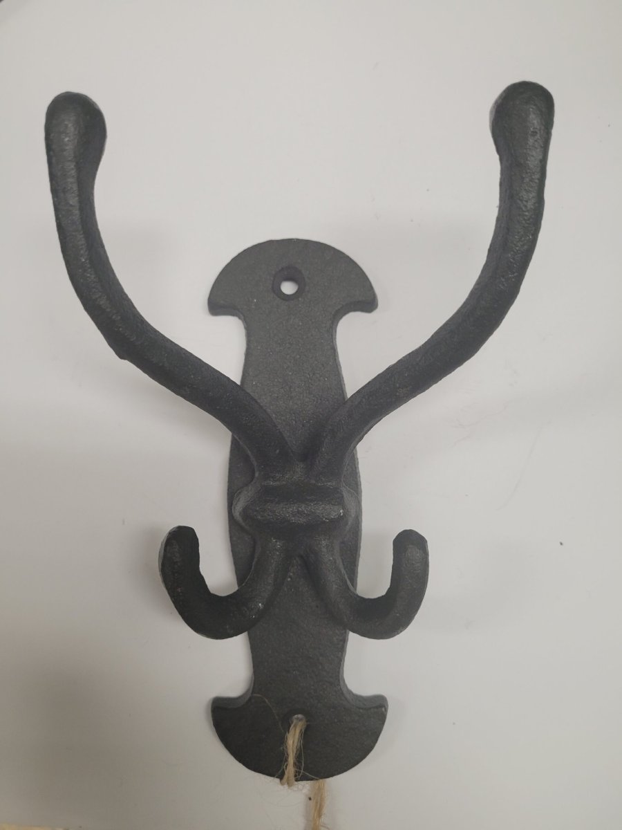 4 i en krok gjutjärn för montering på väggen vikt ca 0.4kg höjd ca 17cm bredd ca 11cm djup 7 cm
