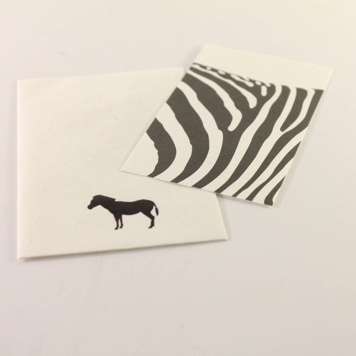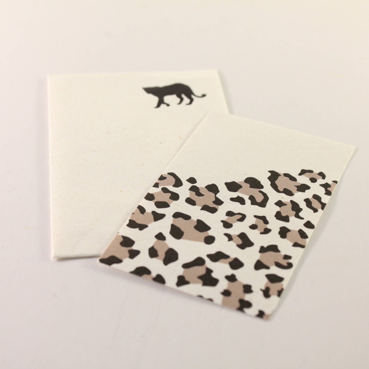 Kortet har också ett kuvert med en matchande siluett av djuret som framsidans mönster speglar.