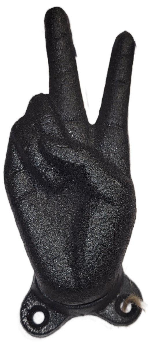 hand med v tecken i Gjutjärn för att hänga upp på väggen hål för skruv