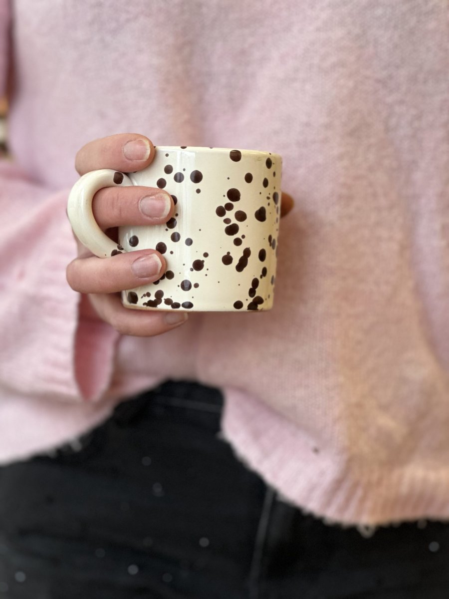 Handgjord kopp från Italien, med den klassiska italienska spruzzi målningen.