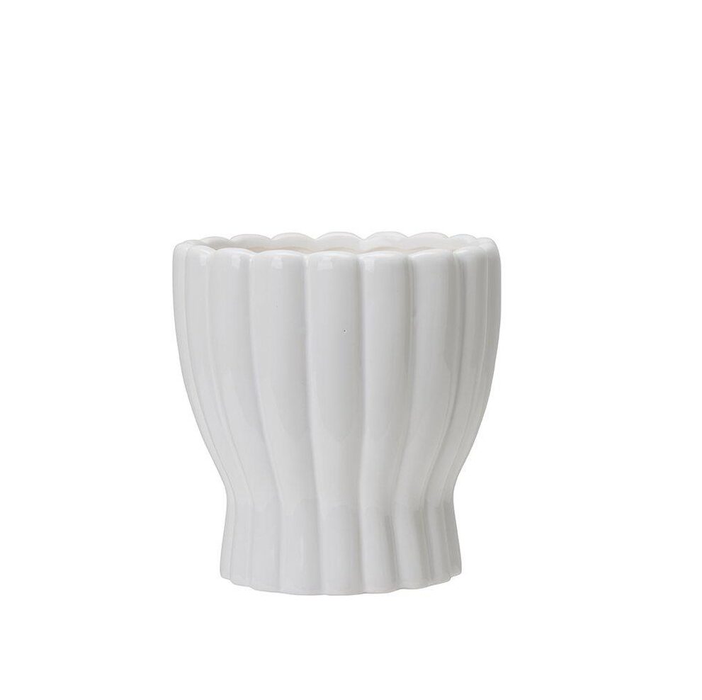 Läcker kruka, perfekt för en vårblomma eller krukväxt. Vit dekorativa ränder. Öppning: 13 cm i diameter.