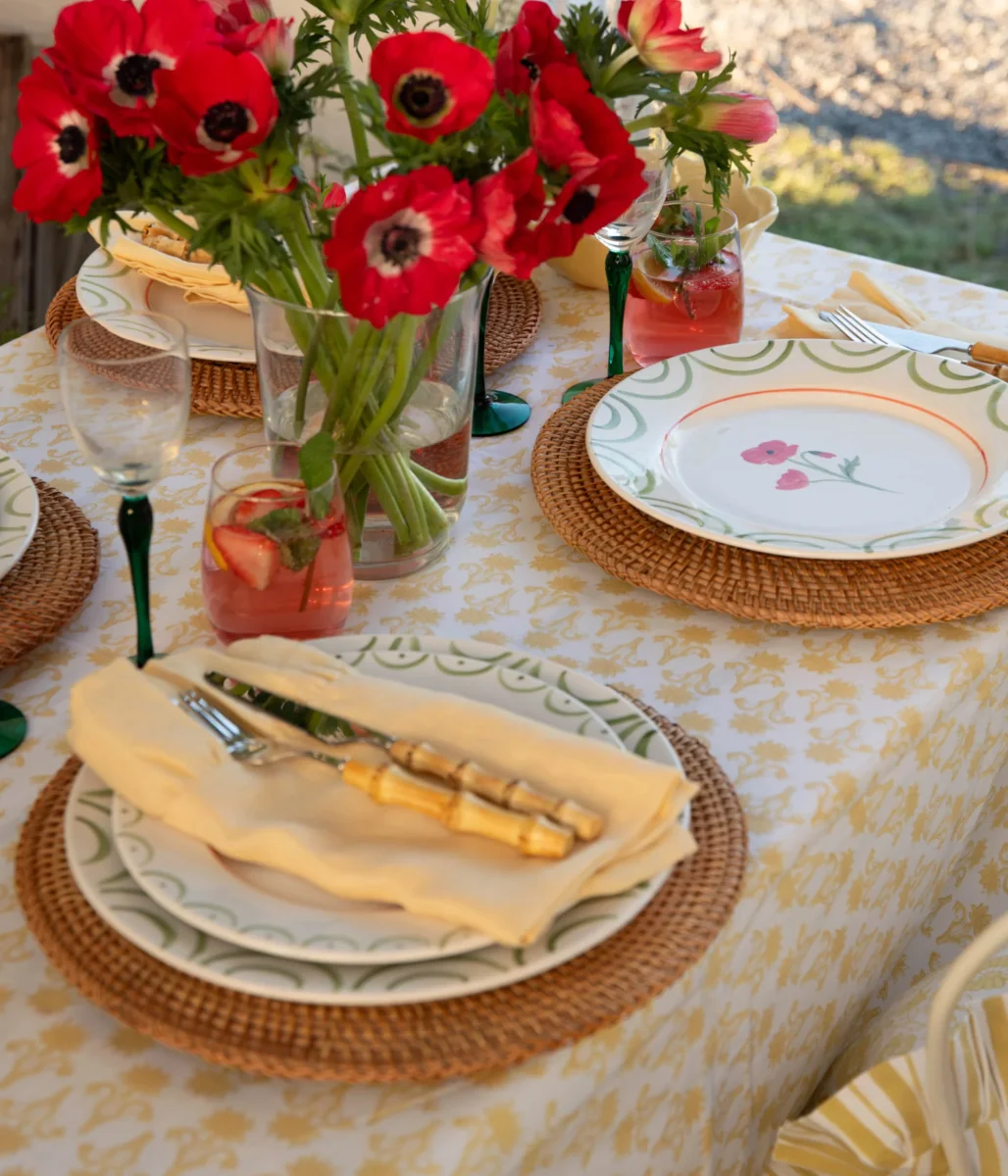 Förhöj upplevelsen runt middagsbordet med vår duk Lily. Handgjord i Jaipur med hjälp av traditionell butti-teknik blir detta en iögonfallande detalj vid din nästa dukning. Kommer i två olika storlekar och flera färger.
