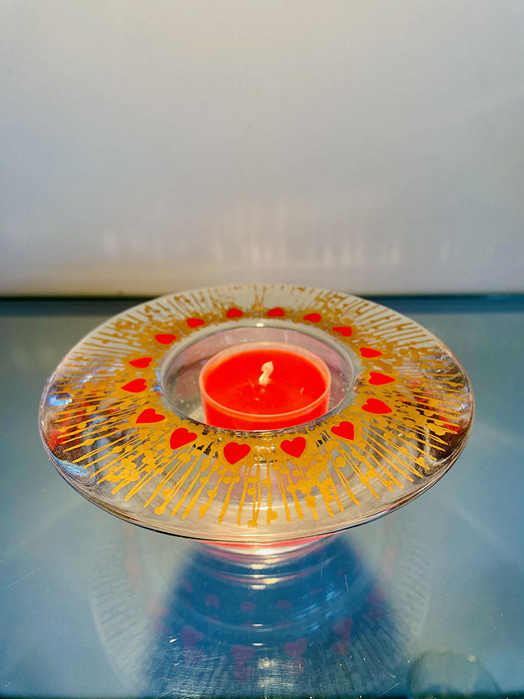 Heavy glass candlestick from Danish Holmegaard. Suitable for calendar candles or a larger candle, or as here with a tea light. It is 3.5 cm high and measures 11.2 cm in diameter. It is in good condition. Holmegaard’s glassworks was founded in 1825. In the beginning, they only produced green glass. From being a small glassworks, it has grown into a large modern group over a period of 175 years.