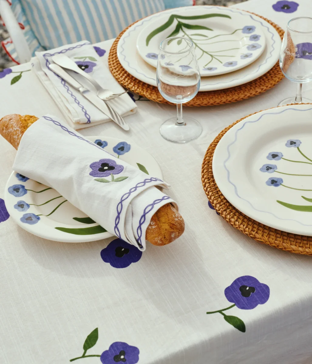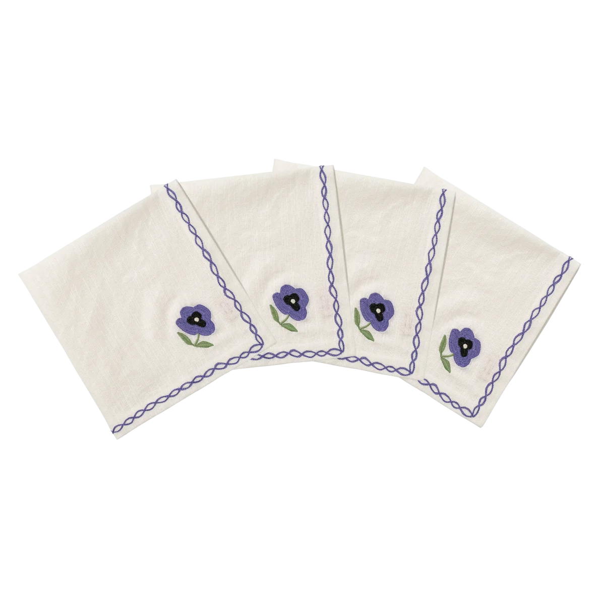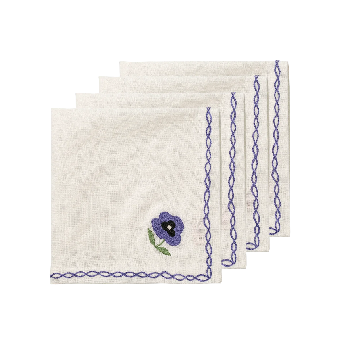 Pansy servetter, designade av svenska konstnären och designern Madelen Möllard, adderar vårkänslor till din dukning med sina handbroderad penséer. Servetterna säljs i 4-pack och är perfekta för att skapa en blommande atmosfär vid det dukade bordet, till såväl frukost som festlig middag.