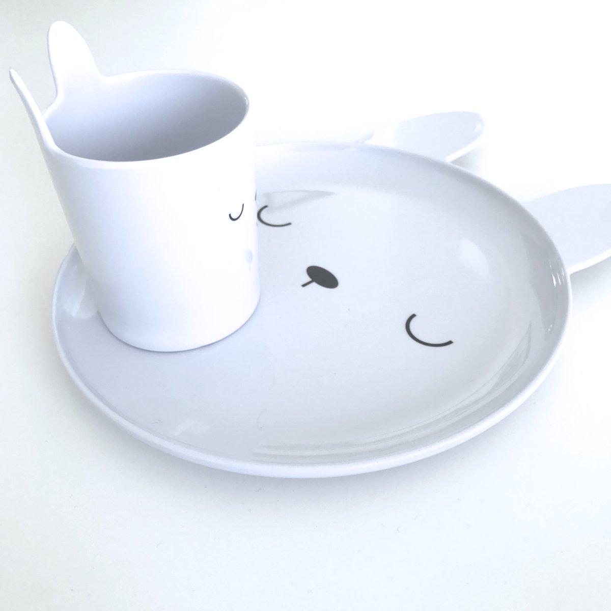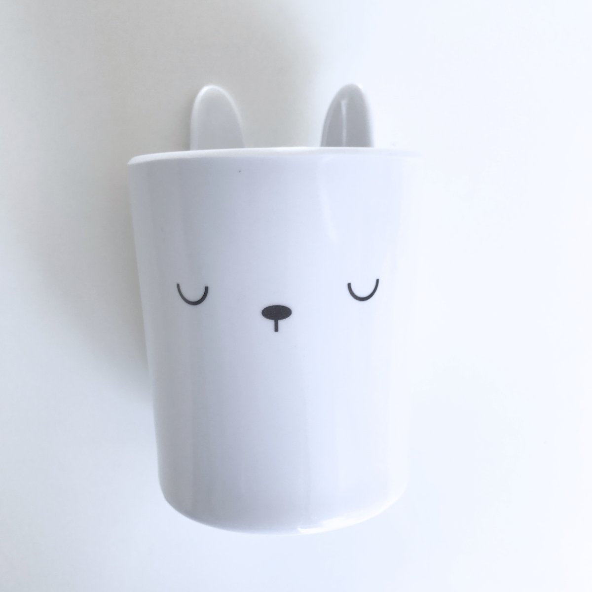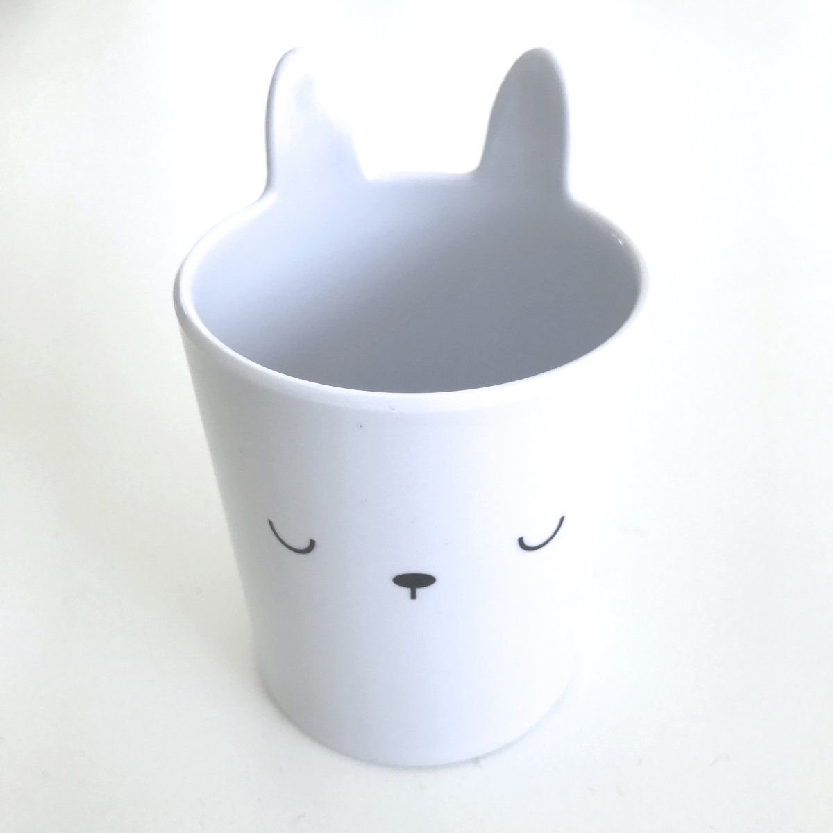 En fin och stöttålig barnmugg av giftfri melamin i form av en söt kanin. Matcha gärna med mugg i samma serie.