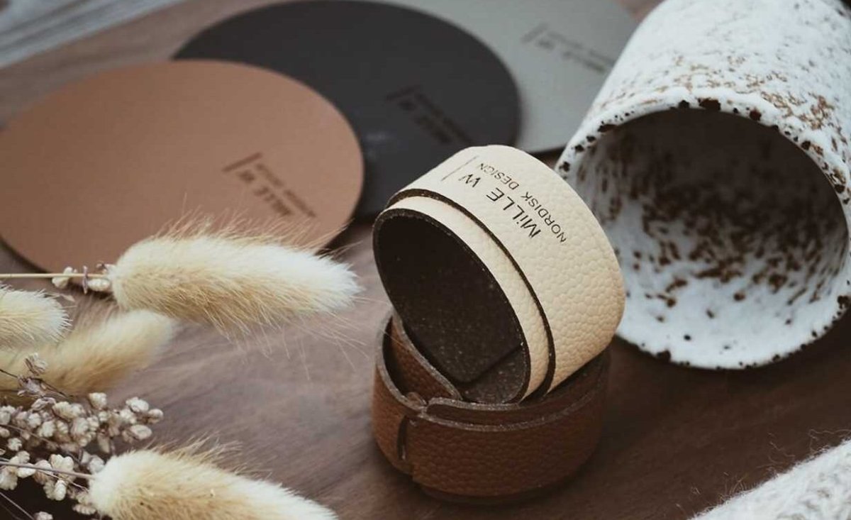 Servettring i unik nordisk design handgjord av återvunnet läder i Sverige.