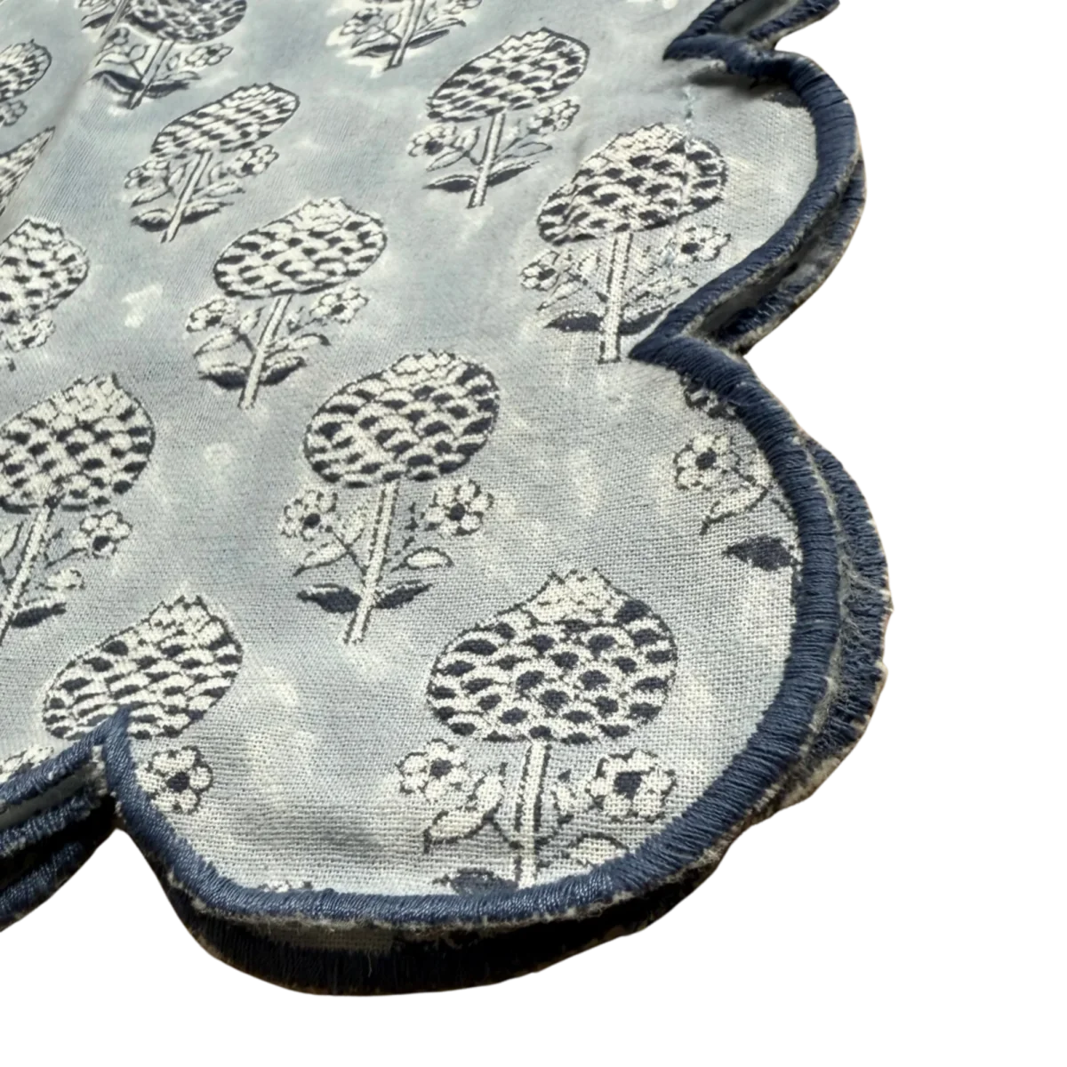 Förhöj upplevelsen runt middagsbord med vår dekorativa servett Poppy Seed. Tillverkad av 100% bomull och blocktryckt för hand med uråldrigt hantverk från Jaipur, har denna textilservett en mjuk vågig form och är broderad med en kontrasterande färgad kant. Finns i olika färgkombinationer för att komplettera våra andra Butti-tryckta textilier.