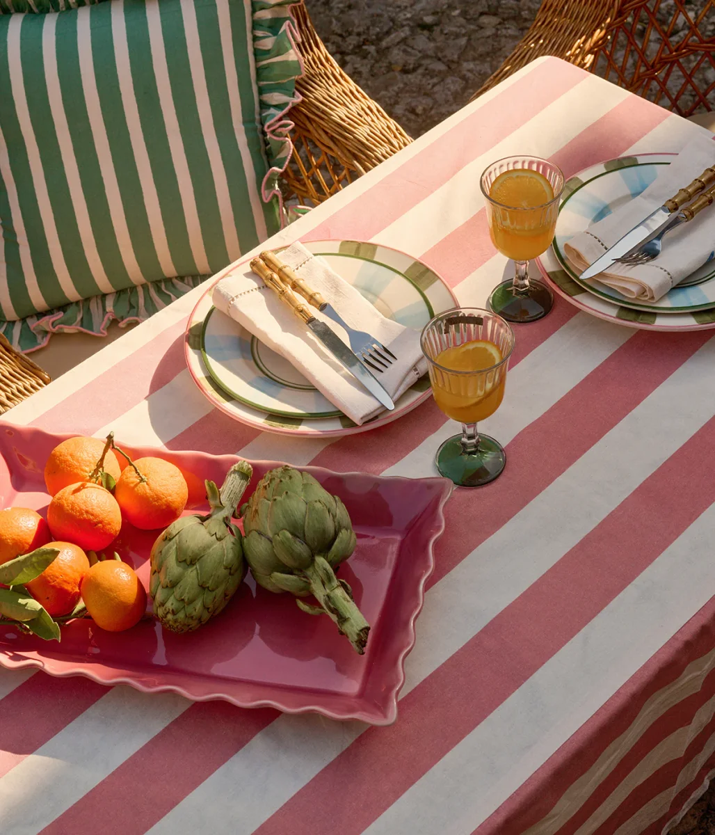 Handgjort serveringsfat i lergods med traditionellt hantverk i Portugal. Målad för hand med en mjuk vågig yta.