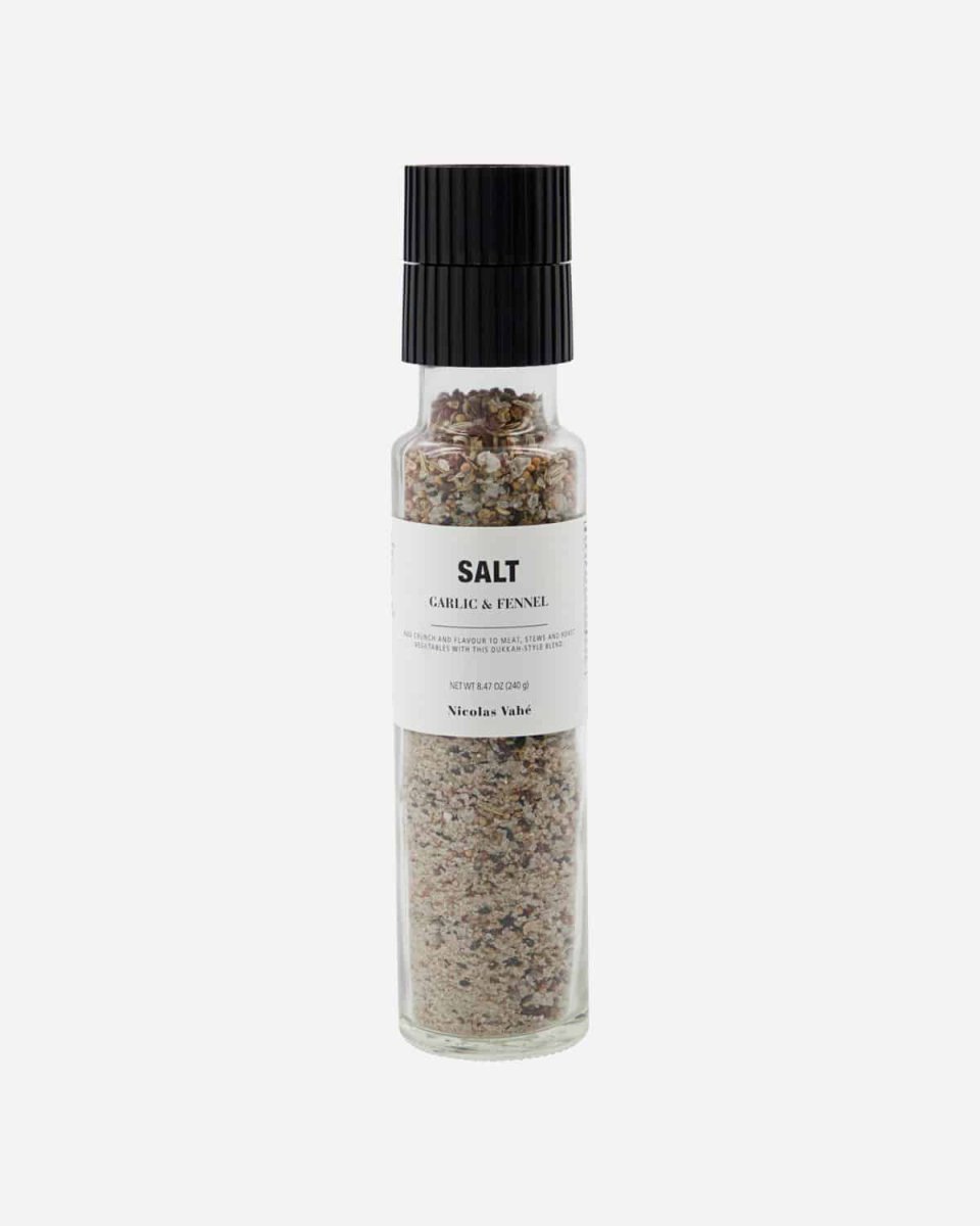 Förvandla dina soppor och grytor till en kulinarisk upplevelse med detta vitlöks- och fänkålssalt från Nicolas Vahé. En touch av svartpeppar, anis, ingefära och citrongräs avslutar denna saltblandning med en exotisk och spännande ton. Du kan till och med använda den som ett alternativ till dukkah, den populära kryddblandningen som lyfter vilken rätt som helst.