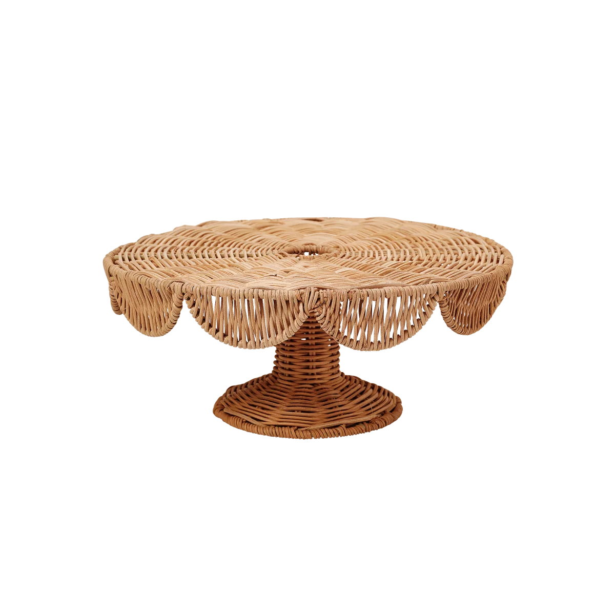 Tillför rustik elegans till dina serveringar med vårt tårtfat Scallop i rotting. Tårtfatet är handgjort med traditionellt hantverk och perfekt för att på ett festligt sätt lyfta fram dina bakverk, tårtor och godsaker. Fatets rundade kanter skapar ett mjukt och charmigt intryck till varje bord.