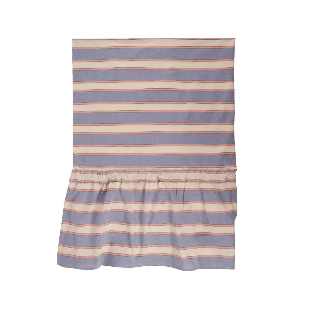 Sätt den rätta grunden till din dukning med vår randiga bordsduk Somerset i en lekfull volangdesign. Handvävd av infärgad bomull i Jaipur, Indien. Duken kommer i två vackra färgalternativ av blått och ljusrosa med kontrasterande ränder och finns i två storlekar. Måtten inkluderar volangen, som i sig mäter 36 cm.