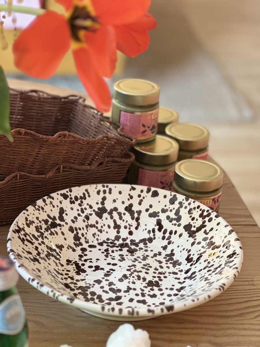 Stor brun Spruzzi skål i handgjord keramik från Italien. Perfekt som serveringsskål till sallad, pasta, frukt eller dessert.