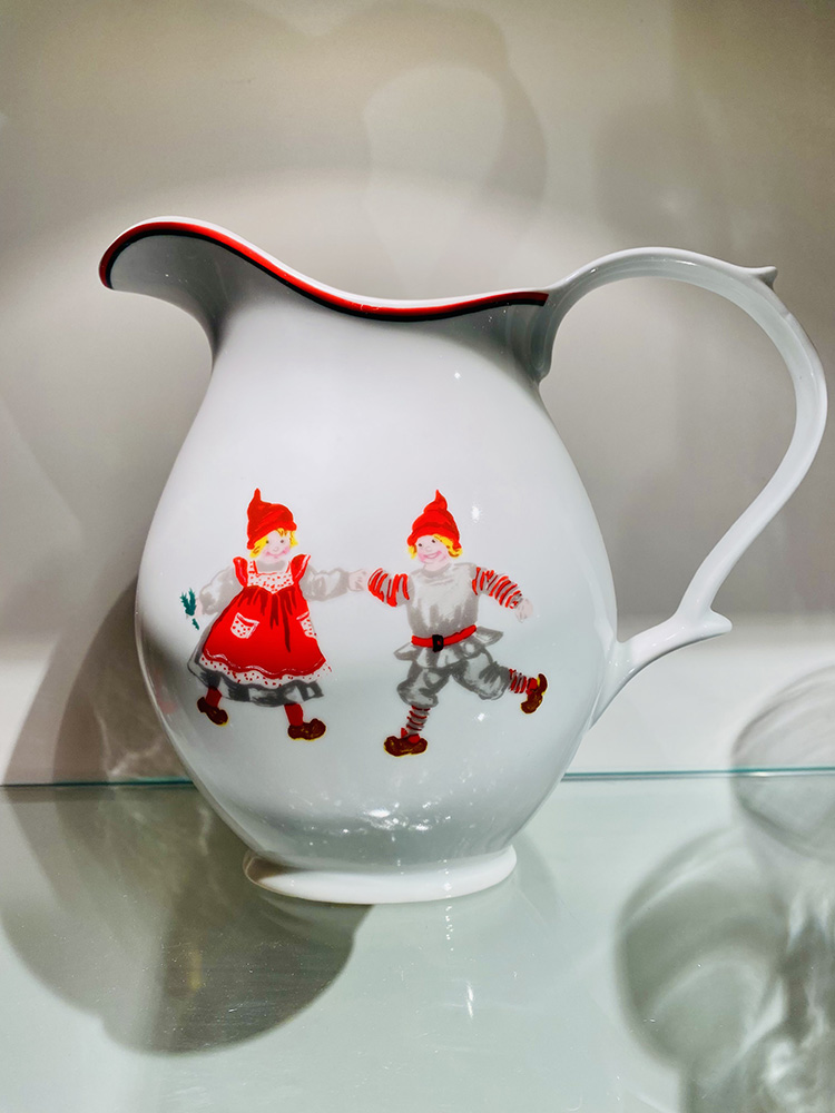 Jug with Christmas motifs. The jug is 21 cm high and measures 21 cm in width with the handle included. It is in new condition. This is a typical Swedish Christmas tableware. Mariehult is the industrial warehouse in Kinna’s brand. Manufacturing takes place in several different places in the world. Designer Karin Kry is constantly developing the brand.
