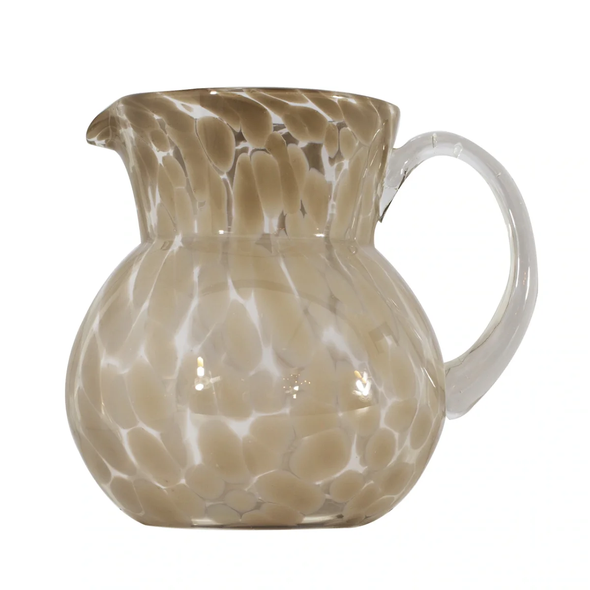 Läcker tillbringare av glas med sandfärgat mönster. Finns även i matchande dricksglas och ljusstakar.