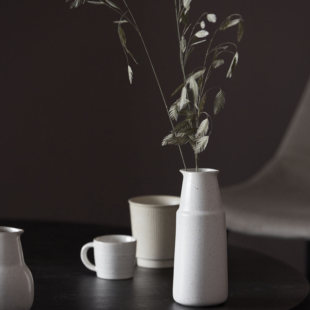Det där lilla extra är ibland det som skapar helhetskänslan kring middagsbordet. Du kan använda den stora porslinstillbringaren Pion för vatten, mjölk, juice eller annan dryck på ett avslappnad men ändå stiligt sätt. House Doctor har designat denna flaska med en symmetrisk känsla och gett den en vit fläckighet. Oavsett om du använder den till frukosten eller för en avslappnad middag med vänner kommer denna tillbringare vara ett stiligt tillskott till ditt middagsbord. Använd tillsammans med andra Pion-produkter eller tillsammans med dina favorittallrikar för en personlig dukning.