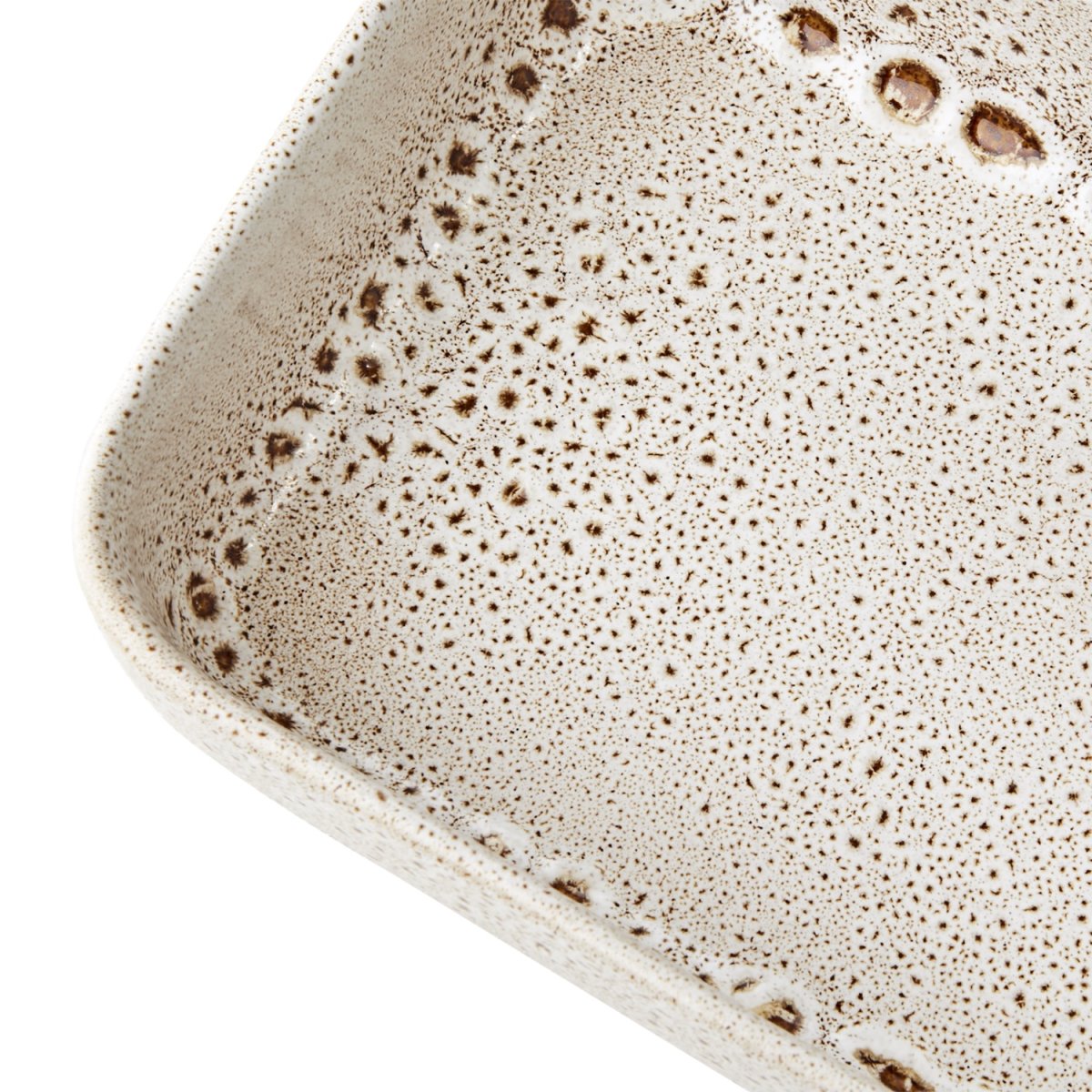 Stilren och naturlig matservis med tallrikar och skålar, fat och formar av glaserat stengods. Alla produkter i serien Sandsten kommer att levereras i ett varierat mönster. Detta beror på den naturliga reaktion som sker vid glasyrbränningen. Variationen är en del av produktfamiljens charm.