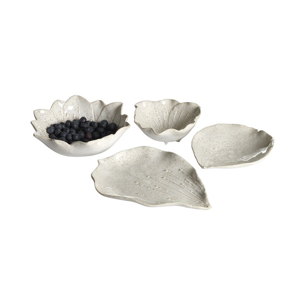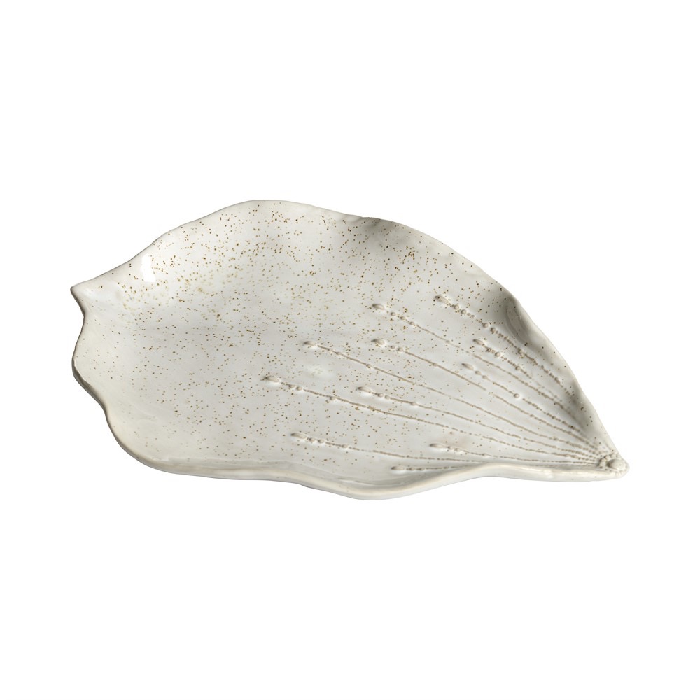 Vacker uppläggnigsfat i stengods. Format som ett blomblad. Passar att lägga det mesta på för en inbjudande servering.